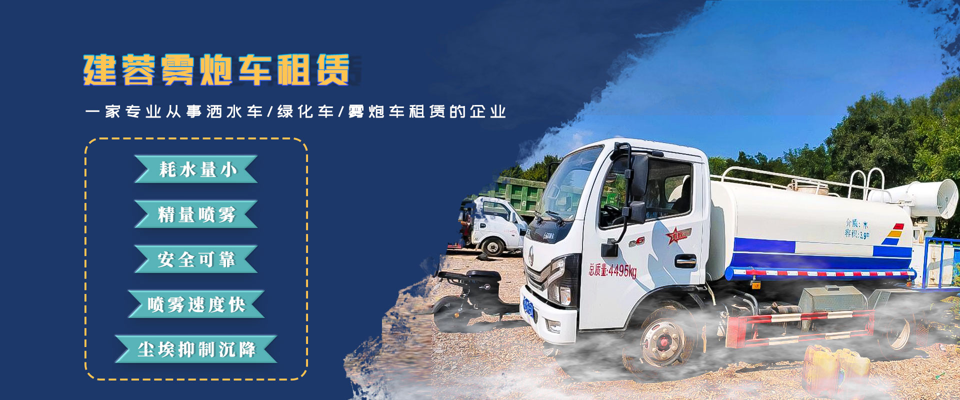 仁壽縣建蓉灑水車租賃有限公司是一家專業從事灑水車/綠化車/霧炮車租賃的企業,我們有多臺灑水車可以長期對外租賃。公司一直堅持以“創新移動環保,生態綠色節源”為宗旨,以專業的實力,上乘的服務和合理的費用,贏得了社會廣泛的贊譽。 我公司專業提供租賃大量各種型號灑水車,綠化車,霧炮車等對外長期租賃,有需要者請及時與本公司聯系。